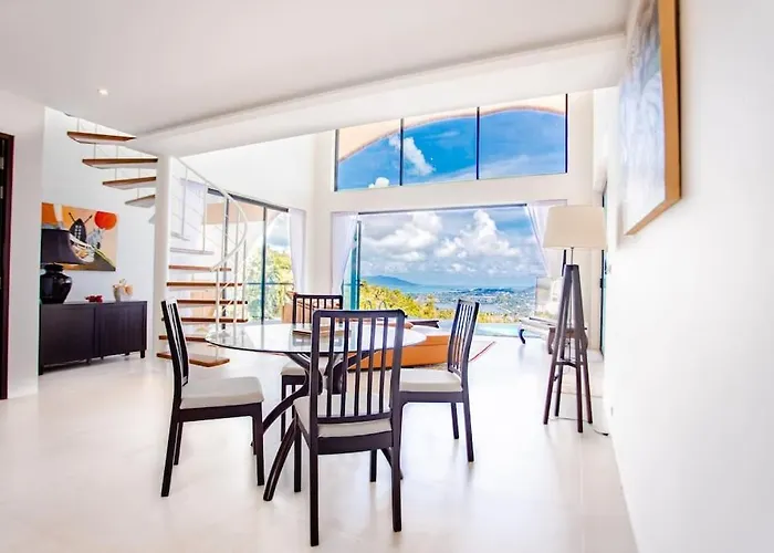 Chaweng Seaview Villa s střešním bazénem s 2 ložnicemi je vybavena terasou s výhledem na hory. Umístěna ve městě Ko Samui, nemovitost je 2 km od Pláž Chaweng Noi.